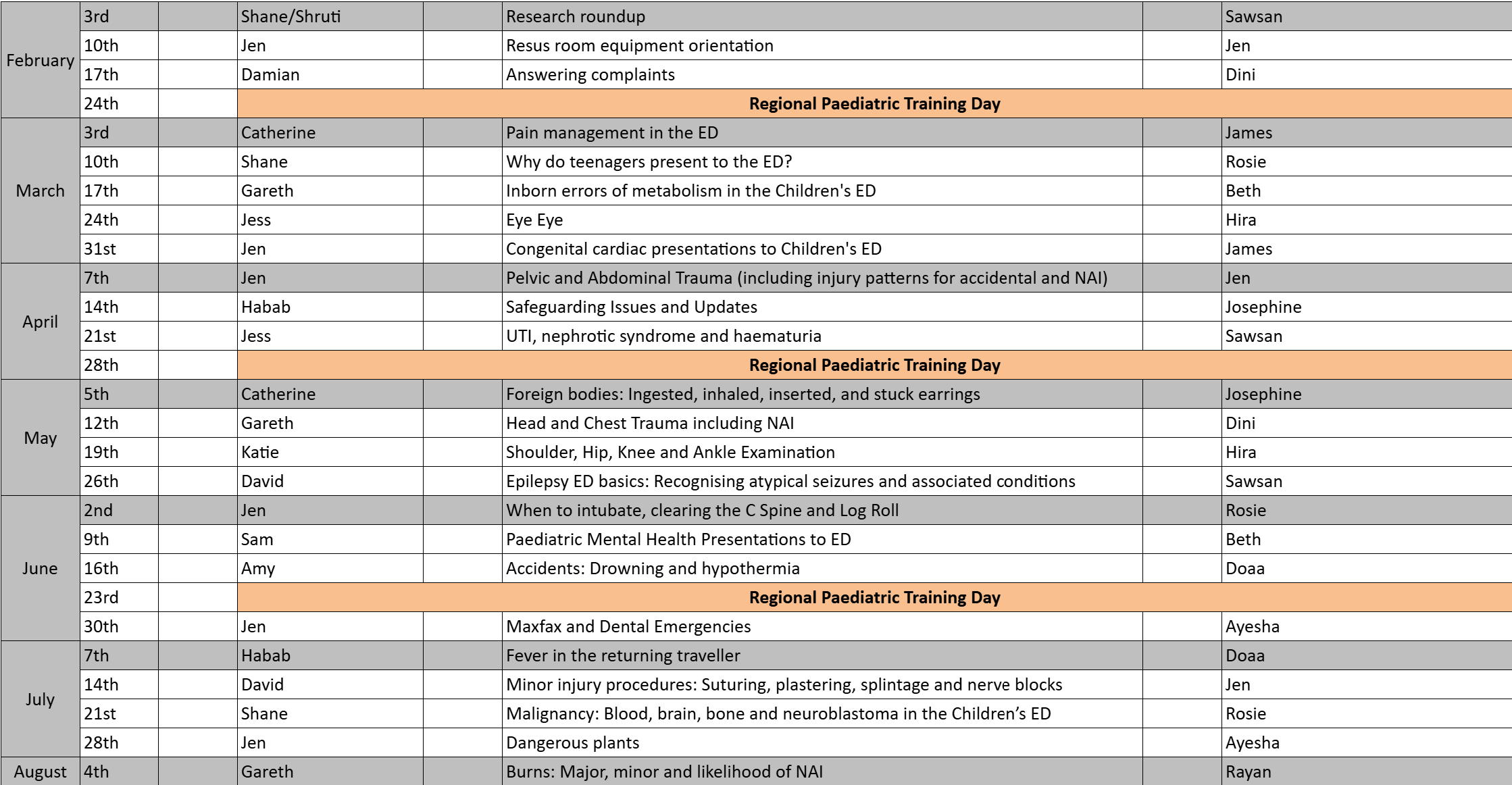 FY1, FY2 and JTG Paediatric ED Teaching