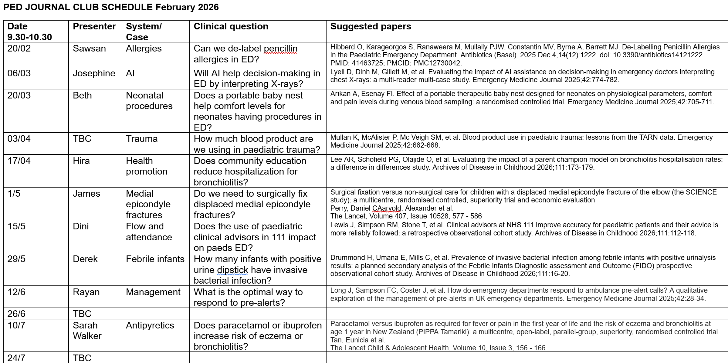 Journal Club Schedule